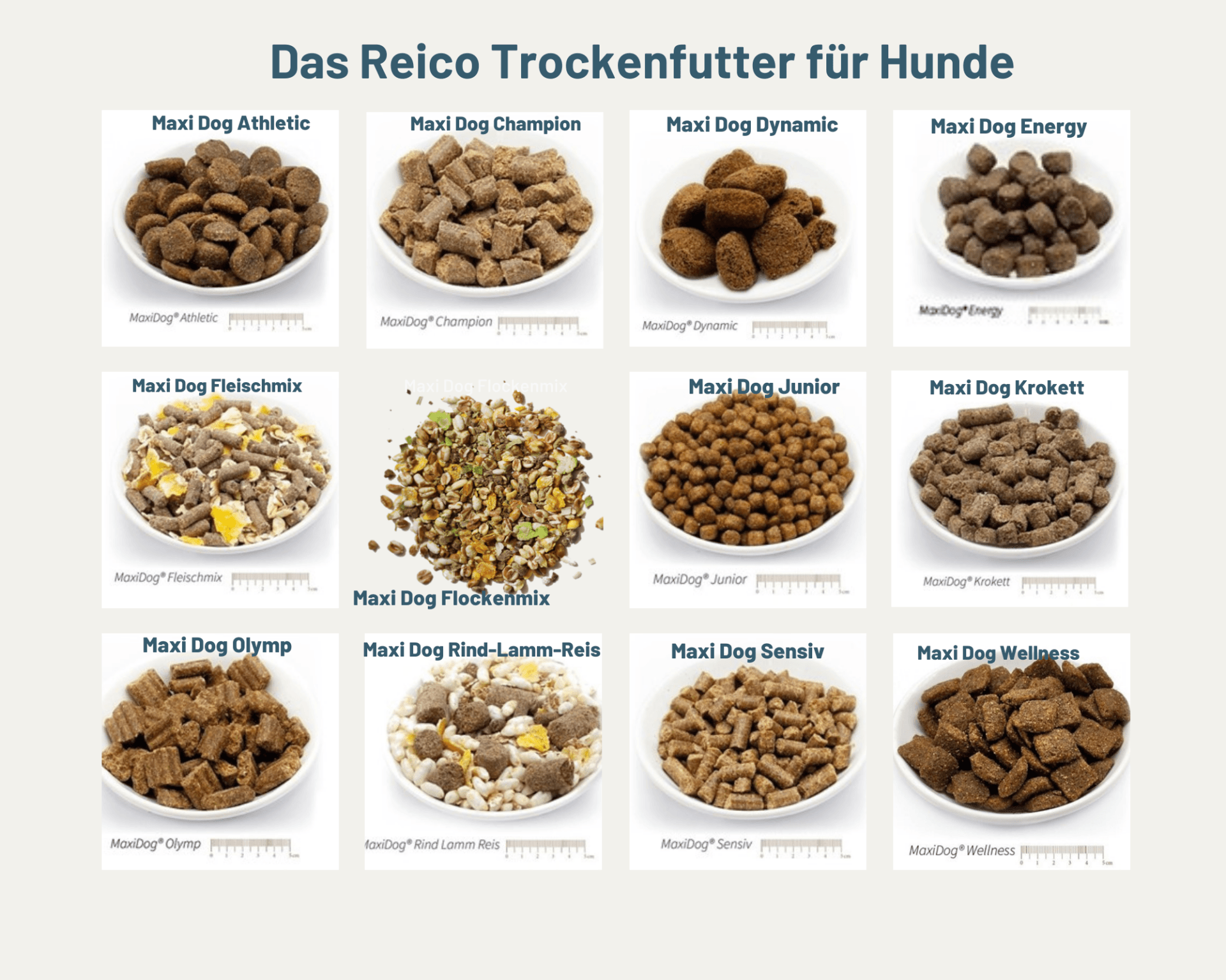 - MaxiDogVit für jeden Hund geeignet, in den Größen 200 gr. , 400 gr. und 800 gr., mit dem Reico Algenkomplex